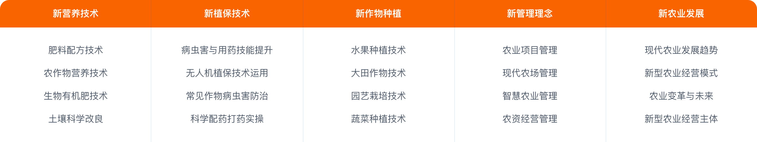 天天课堂,作为线上学习平台,整合天天学农课程库的企业培训课程体系,提供一站式数字化学习解决方案,助力企业构建高效人才培养模式。